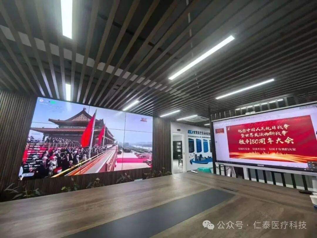 今天,仁泰全体人员齐聚一堂,共同观看中国人民抗日战争暨世界反法西斯战争胜利 80 周年现场直播。当国歌在耳畔激昂奏响,礼炮在长空震撼轰鸣,历史的厚重回响与时代的强劲脉搏紧紧交织,我们心中涌动的,是对革命先烈的深切崇敬,是对伟大祖国的炽热热爱,更是对 “有国才有家、有国才有企、有国才有我们” 的深刻感悟。