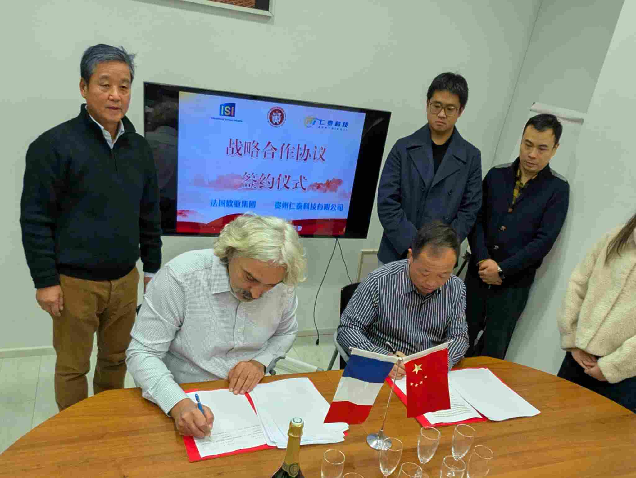 当中国智慧医疗的创新成果遇上欧洲市场的广阔机遇,一场由法国贵州商会鼎力促成的跨境合作正式启航!2025 年 11 月 21 日,贵州仁泰科技有限公司与法国欧亚集团(ISI GROUP (FR))在法国巴黎隆重签署战略框架合作协议,在欧亚集团创始人、法国贵州商会会长李贵生先生的见证与推动下,双方将秉持 “诚信自愿、优势互补、互利共赢、共同发展” 的核心原则,携手深耕欧洲医疗健康市场,这标志着仁泰科技国际化战略迈出关键一步。